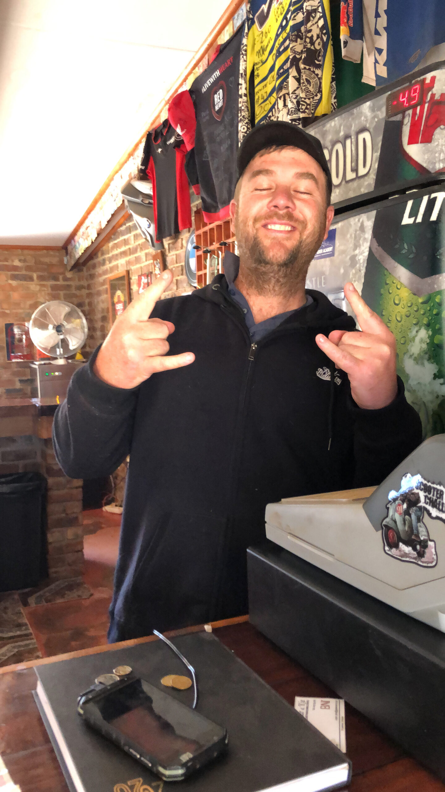 Soon we were all enjoying a burger at Pete’s place. Upon who’s wall I joined the ranks of the gravity delinquents. When next you take a dump there check it out – above the porcelain throne now stands;